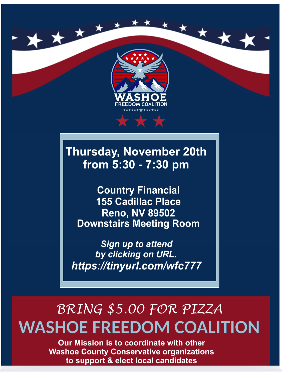 Our Mission is to coordinate with Washoe County Conservative organizations to elect County and City candidates as well as support Ballot Measures on the 2026 ballot.